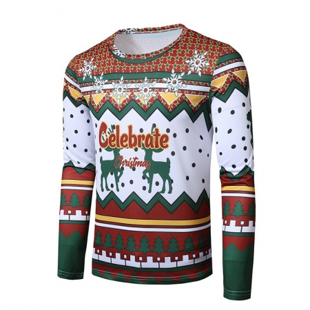 New 3D Personality Printing Fashion Men's Christmas Long Sleeve T-Shirt