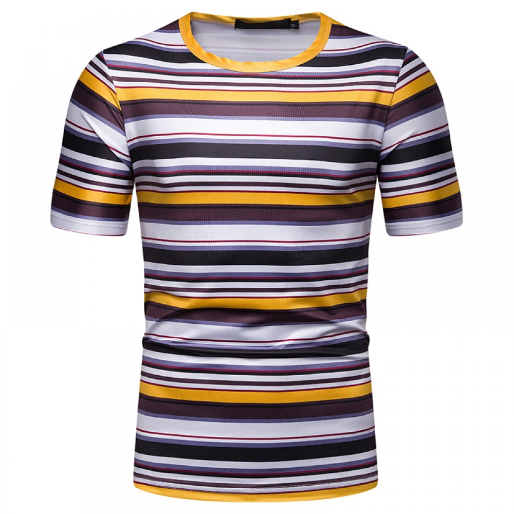 New Summer Men's Short-Sleeved T-Shirt Mens Contrast Striped Slim-Fit Casual T-Shirts