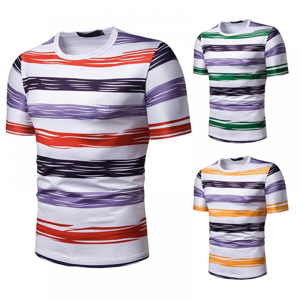 New Summer Men's Short-Sleeved T-Shirt Mens Contrast Striped Slim-Fit Casual T-Shirts