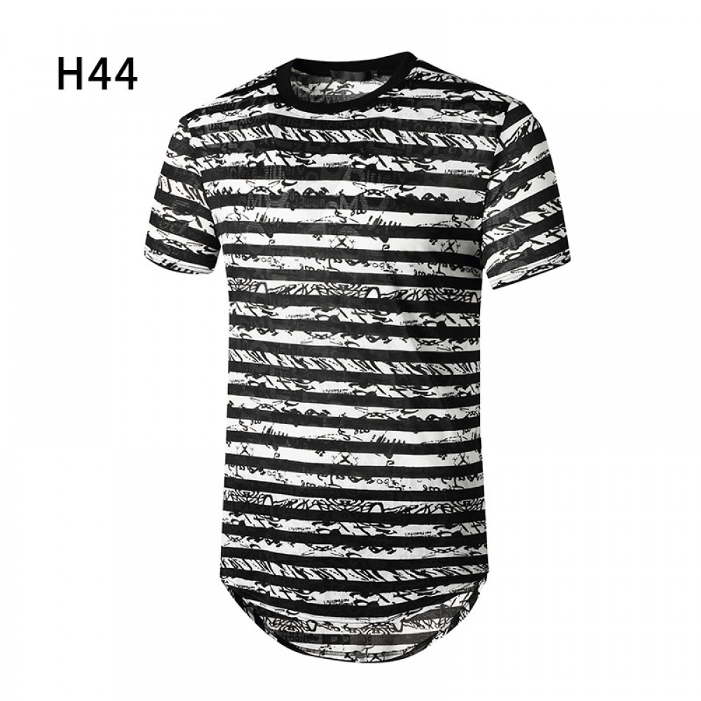New Summer Men's Short-Sleeved T-Shirt Men's Contrast Striped Slim Casual T-Shirt