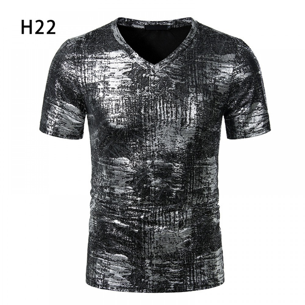 Summer Men's Nightclub Bar Fashion Casual Hot Stamping Printing Short-Sleeved Printed T-Shirt
