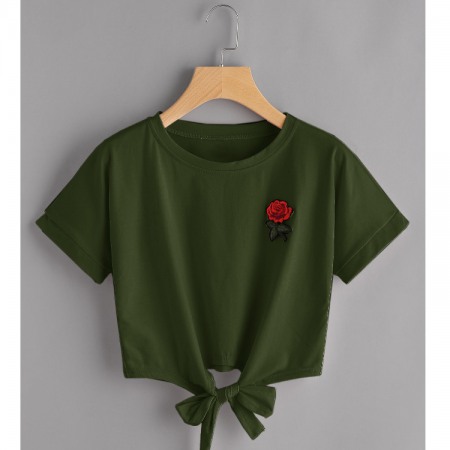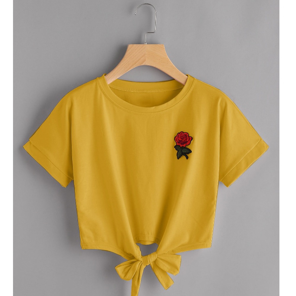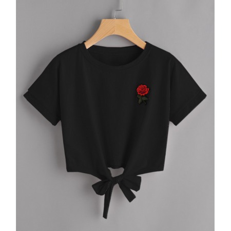 Summer New Style Rose Embroidery Lace All-Match Short T-Shirt Women